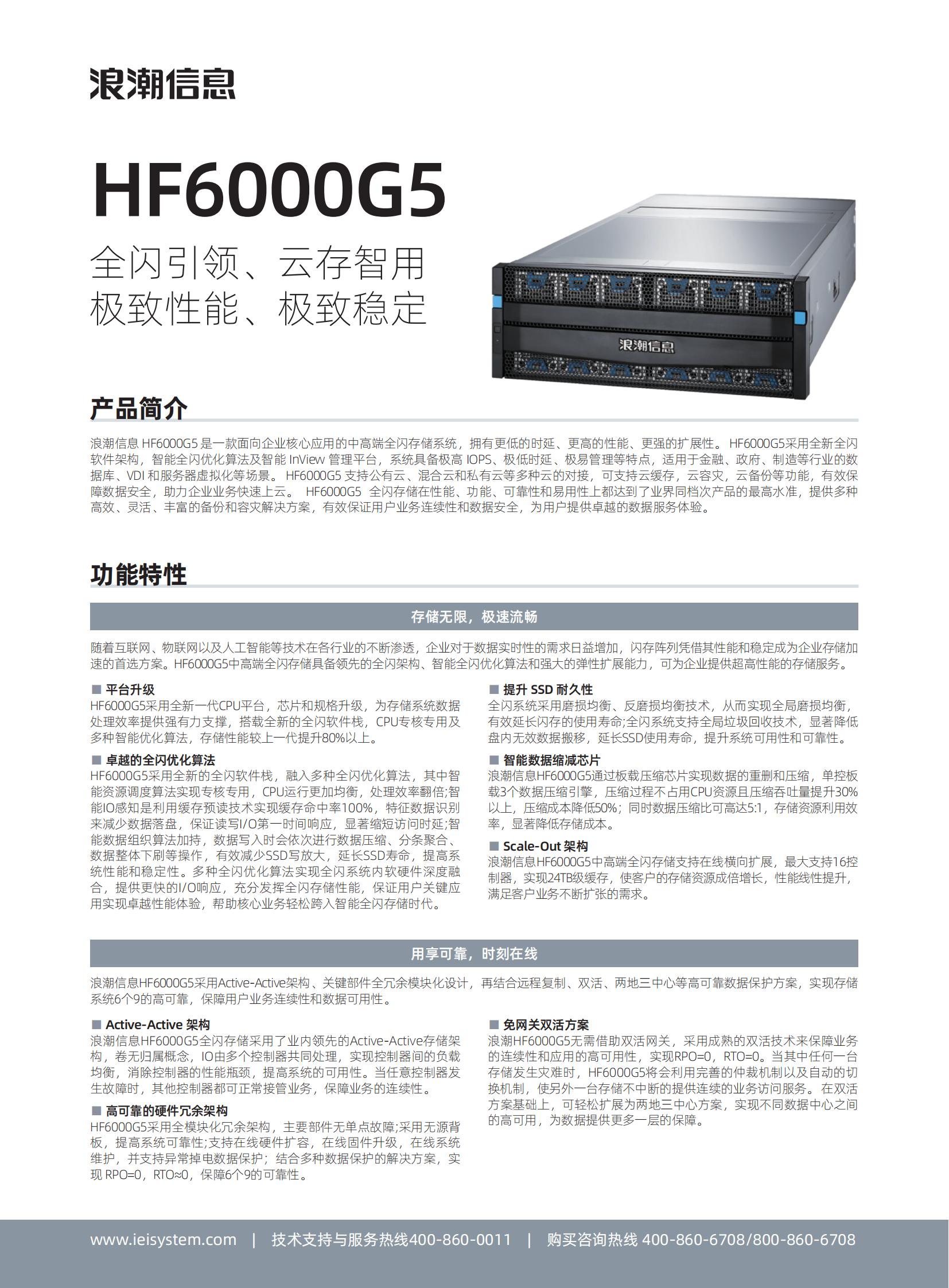 HF6000G5采用全新全闪软件架构,智能全闪优化算法及智能 InView 管理平台,系统具备极高 IOPS、极低时延、极易管理等特点,适用于金融、政府、制造等行业的数据库、VDI 和服务器虚拟化等场景。